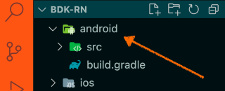 We will create an Android native module which will interact with bdk-android. This is done by adding a new Kotlin file BdkRnModule.kt inside android/app/src/main/java/com/bdkrn/ folder